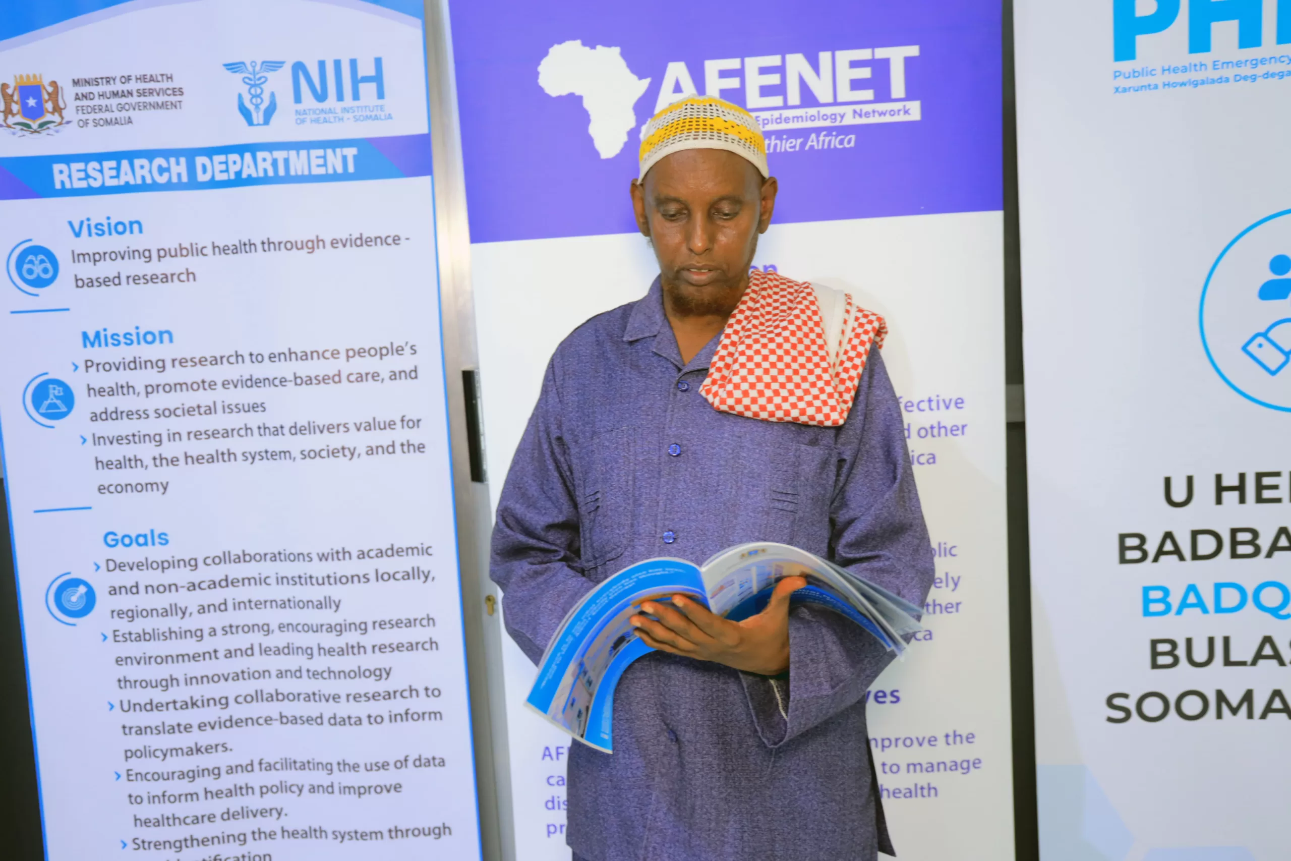 The National Institute of Health (NIH) is proud to announce the successful completion of its first-ever Annual Research Exhibition Program in Mogadishu. This week-long event showcased the progress and accomplishments in public health research activities throughout Somalia, producing detailed findings to guide policymakers and experts.